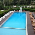 Предлагаем отделку террасной доской вокруг бассейна. Стоимость работ по монтажу самой простой террасы - от 1500 рублей за метр квадратный.